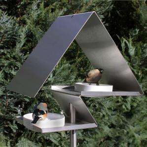 The open design of this combined bird bath makes the food easy for the birds to discover.