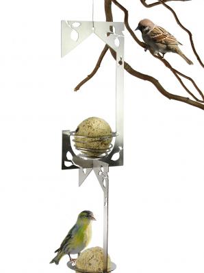 As a further variant, we offer you a more playful suet ball holder with its cut-out leaf silhouettes. Thanks to its straight outer contour, it is also characterized by a modern design language.