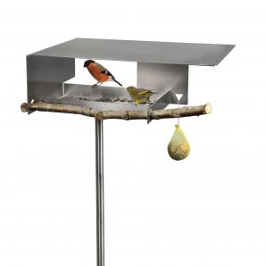 Our bird feeder VH-1 is also available in a stainless steel version. Here the roof is also riveted to the rear side wall. All of our bird feeders can be easily unscrewed from the rod for cleaning.