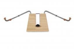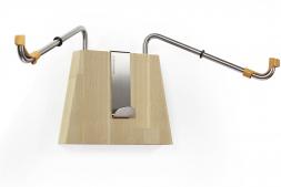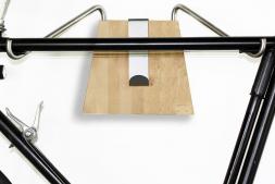 Seine Arme aus massivem Edelstahl lassen sich flach an die Wand klappen. Nichts ragt in den Raum hinein. An einem integrierten Haken, der zugleich die Wandbefestigung verdeckt, finden Fahrradhelm, Taschen oder Fahrradschlösser Platz. Ohne Fahrrad ist dieser Fahrradhalter als Wandgarderobe nutzbar.