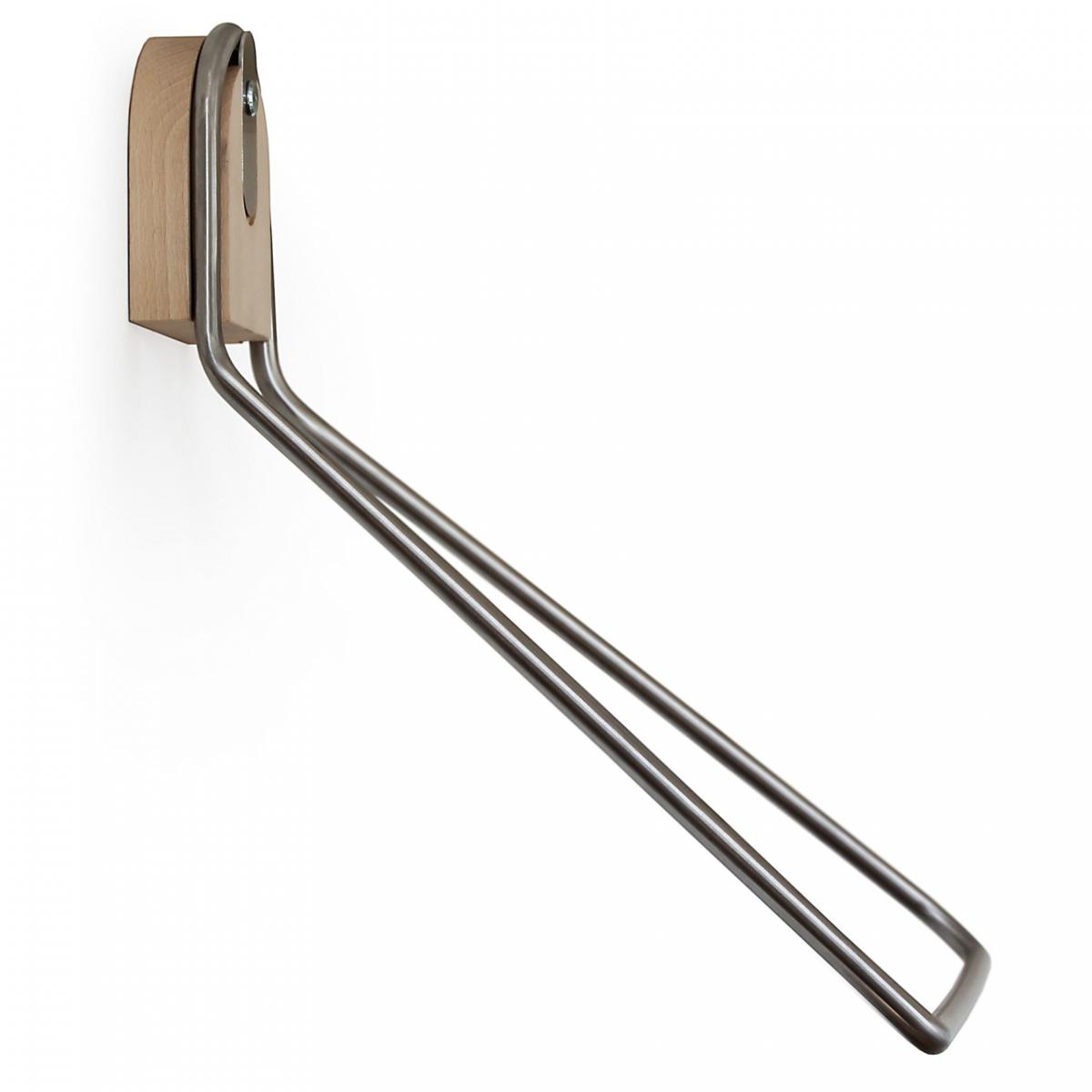 wandgarderobe mit edelstahl-vollmaterial-rohr und buchenholz-element zur wandbefestigung ca 65 x 35 x 35 cm
