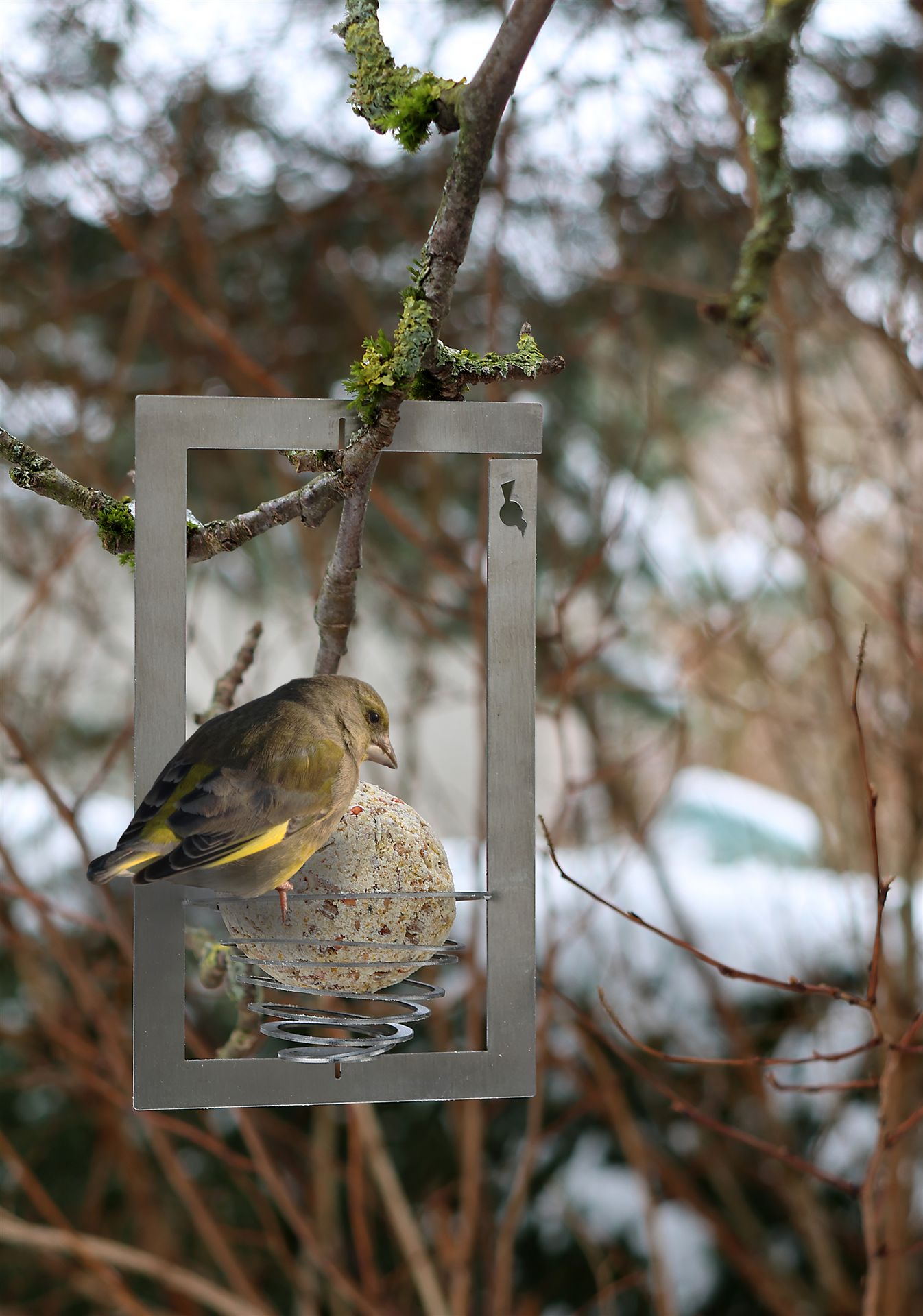 Ganz frisch: Meisenknödel-Halter in klarem Design, Flach zum Verschicken als Brief in einer attraktiven Verpackung oder bereis vorgebogen in einer Box
