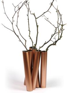 In dieser Vase kommen nicht nur Blumen voll zu ihrer Wirkung, selbst einfache Zweige werden außergewöhnlich in Szene gesetzt. 6 Metallrohre sind an ihren Enden miteinander verbunden, werden zu einer modernen Skulptur. Ein dekorative Blickfang beeindruckt durch seine Größe.