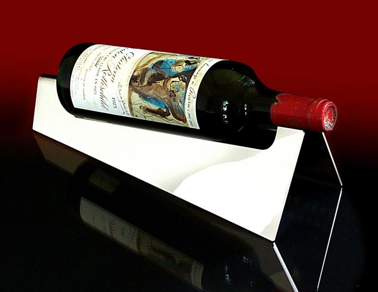 Ständer für weinflaschen aus poliertem edelstahl zur edlen präsentation edler weine