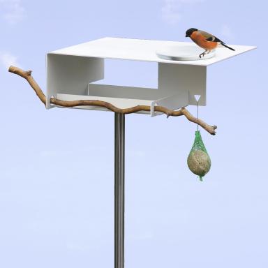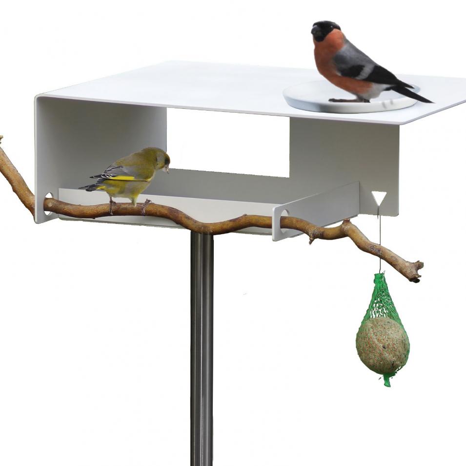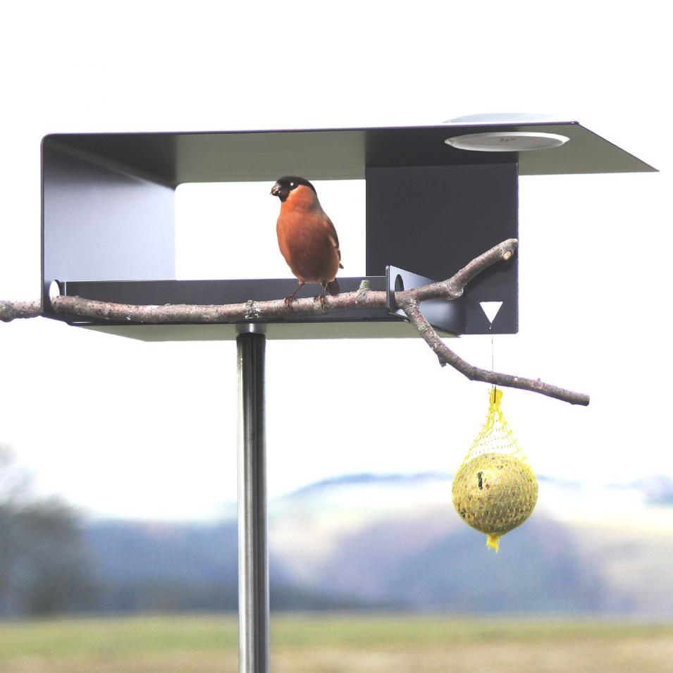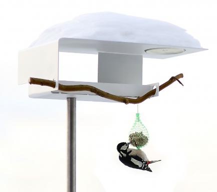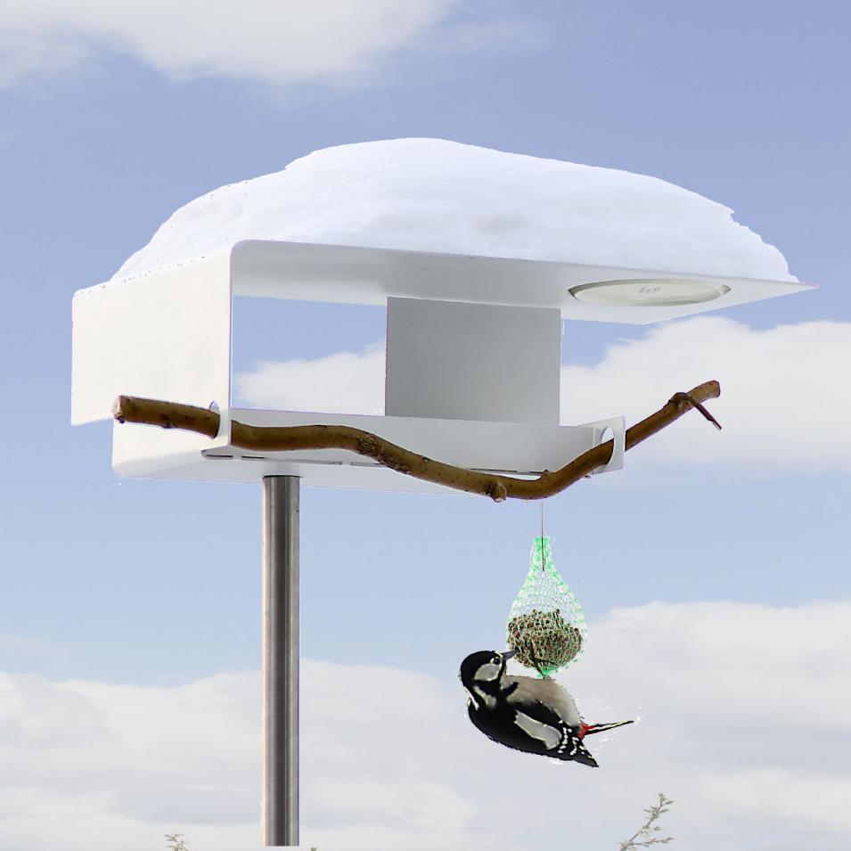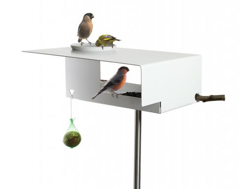 Endlich gibt es auch ein Vogelfutterhaus, welches auch im Sommer als kombinierte Vogeltränke, passend zu Häusern in moderner Architektur, verwendet werden kann.