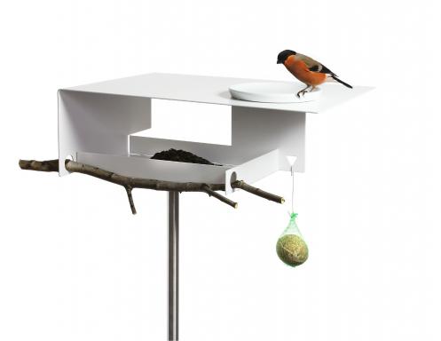 Vogelhaus aus Aluminium mit einer weißen Pulverbeschichtung