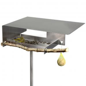 Unser Vogelfutterhaus VH-1 hier in einer Edelstahl-Version. Das Oberteil besteht aus gebüstetem Edelstahl.