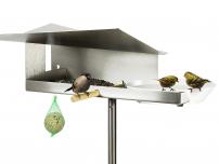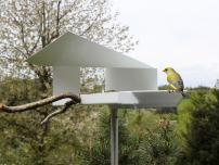 Kombination aus Vogelhaus und Vogeltränke in Edelstahl in modernem Design