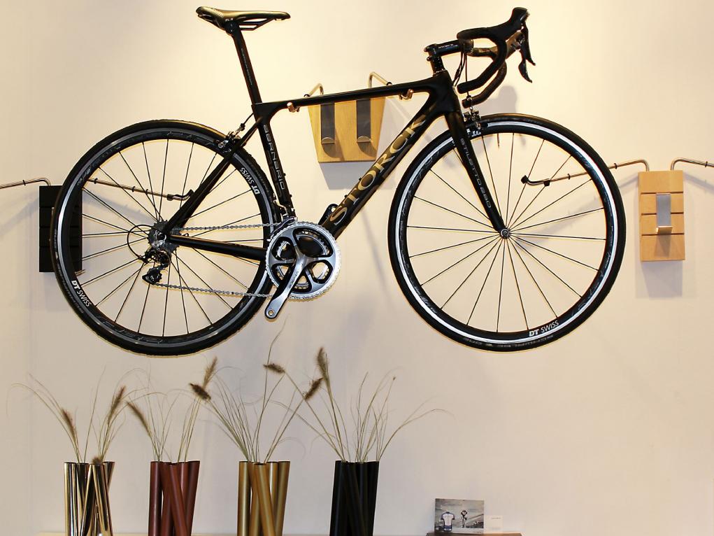 It's not just racing bikes that can be showcased with these wall mounts. Thanks to the height-adjustable arms using small wooden inserts, our bike holder is also suitable for bicycles with sloping or without top tubes, including mountain bikes, city bikes and women's bikes.