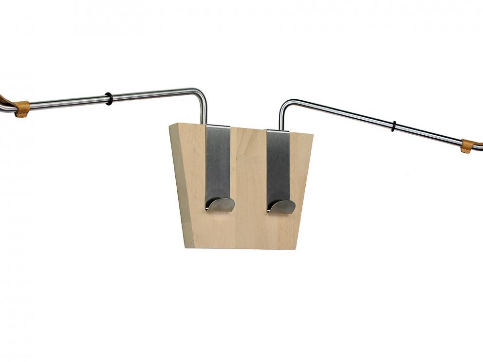 Bicycle wall holder for bicycles with a sloping or straight frame top tube and a handlebar width of up to 45cm[br]BULL - a bicycle holder with 2 hooks and swiveling arms made of stainless steel