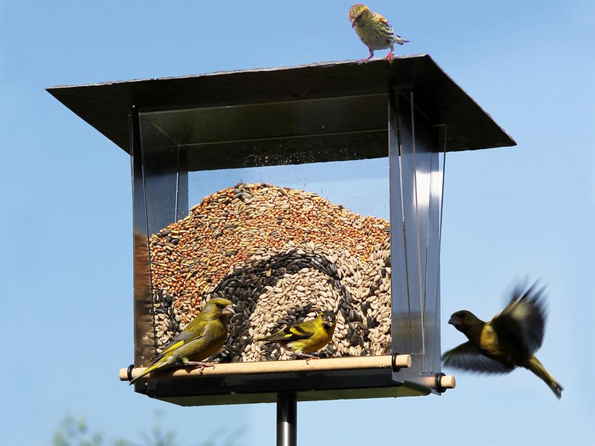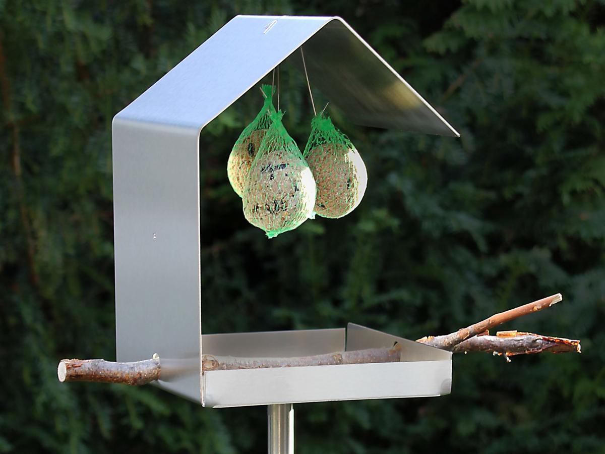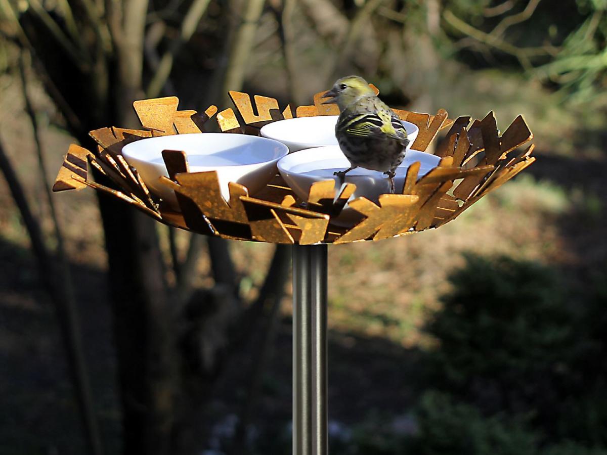 We have tested our bird feeders and bird baths in modern designs made of stainless steel, Corten steel or powder-coated aluminum extensively and recorded them in videos for you, because not every bird feeder is really accepted. Many (especially brightly colored ones or those painted with strong colors) are ignored by many birds.