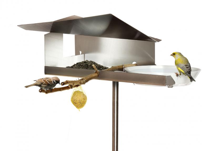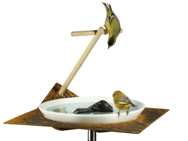Enjoy the colorful activity of the birds all year round, because bird feeding is not only important in the cold season (see article below). Provide birds with access to fresh water even in winter. Our products, be it a combined birdhouse with a waterer or a pure birdbath, are suitable all year round and always impress with their modern and timeless design.