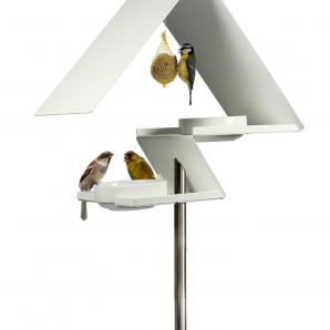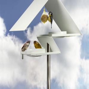 Matching our white birdhouses, our stainless steel bird feeder is now also available with a white powder coating.