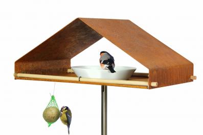 For anyone who finds the contrast between stainless steel and the natural surroundings too great, this bird feeder in patina is the right choice.