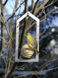 Thanks to an upper, side gap, the holder can be attached to thin branches even without a strap. You can also hang several holders one below the other. For stronger branches, the holder should be secured with a thin wire (florist's wire), string or fishing line.