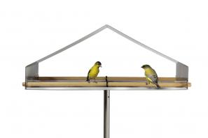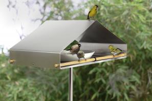 Absolutely new: Our bungalow-style bird house with a flat gable roof, reduced in its basic form. Two beech wood walkways serve as a landing area and boundaries to the front and back. Despite its impressive footprint of 48 x 30 cm and the closed side design, this bird feeder still appears light and delicate. In terms of design, it thrives on its balanced proportions.