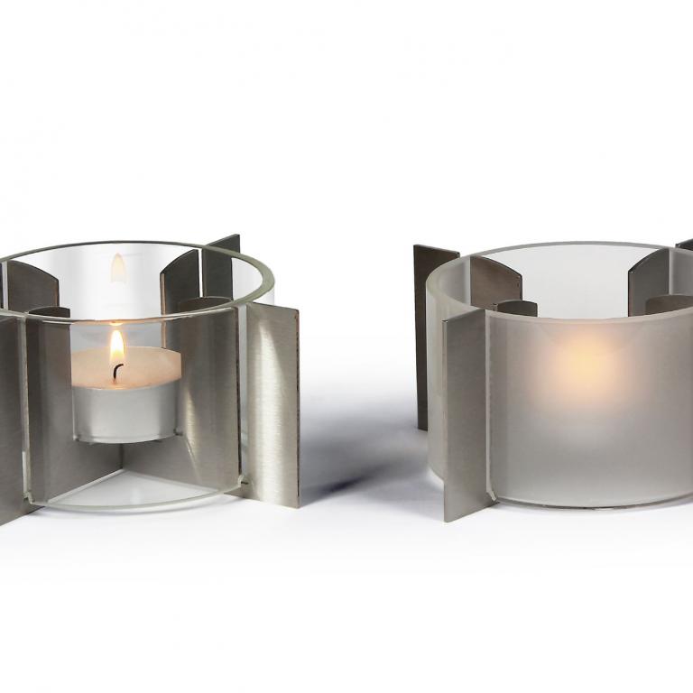 A cylinder made of heat-resistant borosilicate glass shields the tea lights from drafts, provides the necessary heat and lets them appear in a romantic light.