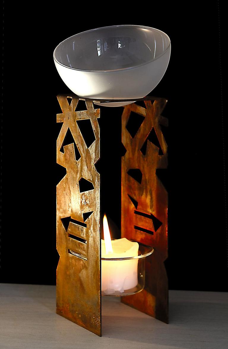 A scent lamp for tea lights and aromatic oils/essences from our series with rusted steel.