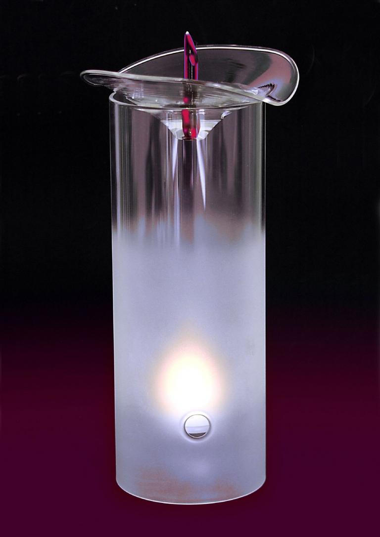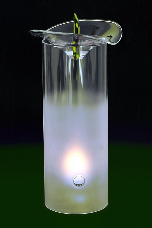 Fragrance lamp with a beautiful, matt glow. The fruit stamp of the interpreted flower shape is made of red or green glass