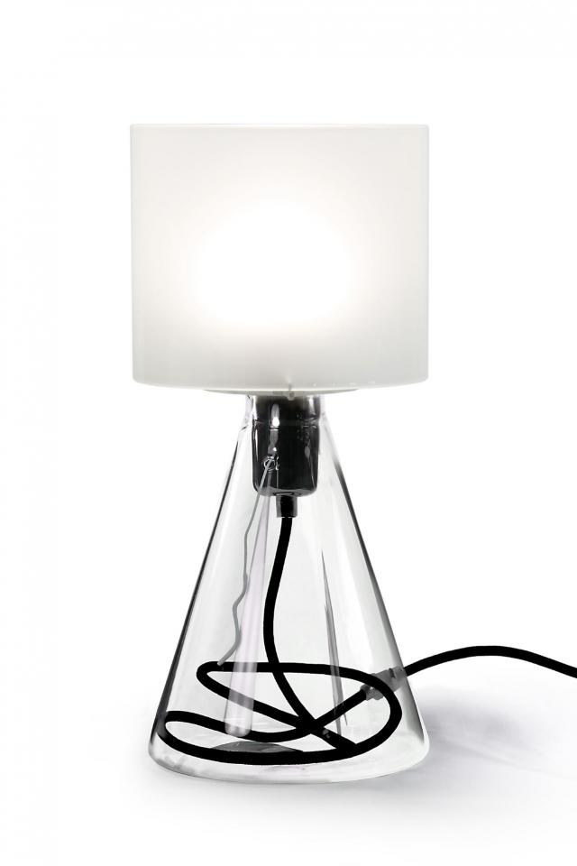 In our vejtsberg -03 lamp, a glass cylinder floats above an elongated glass cone,