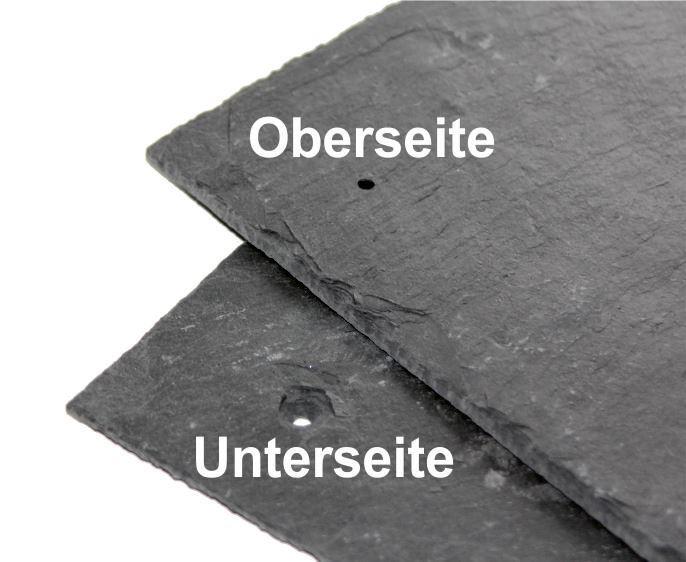 Die Oberfläche, Dicke sowie die Ränder weisen deshalb immer eine Unregelmäßigkeit auf. Dadurch ist jeder Schiefer immer anders