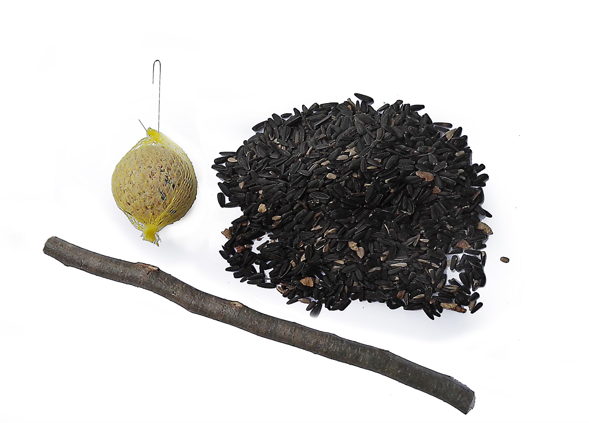 Ein Ast, ein Meisenknödel mit Aufhängung + 200 g Sonnenblumenkerne NUR GEMEINSAM MIT EINER VOGELHAUSBESTELLUNG. Keine Lieferung in die Schweiz und GB möglich.