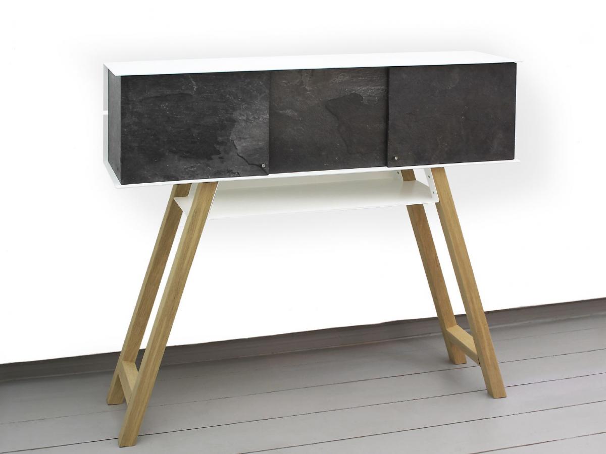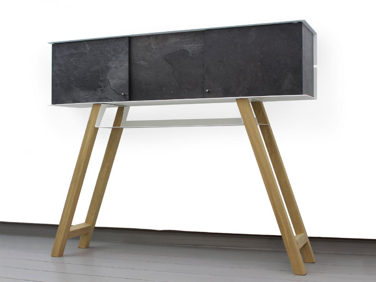 NEU: unser sideboard S-01, basierend auf dem anlehnschrank LS-01-schiefer. mit 4 füßen aus eichenholz und einem zusätzlichen ablagefach benötigt dieses sideboard keine wand zum anlehnen. zum edel ...