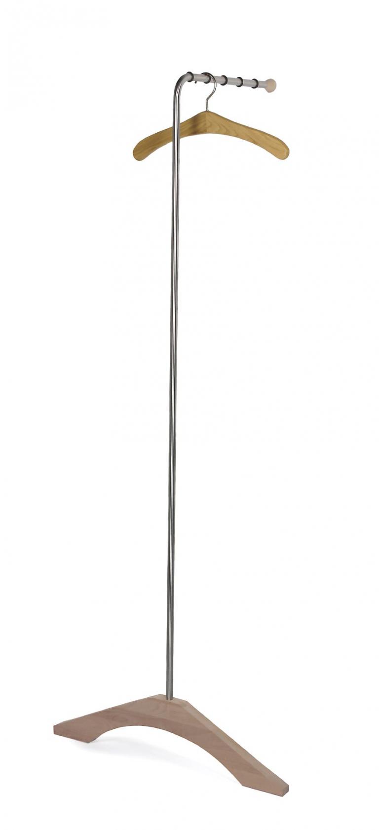 garderobe mit edelstahl-rohr und buchenholz-fuß, zum anlehnen an die wand, ca 1,65 m x 60 x 35 cm