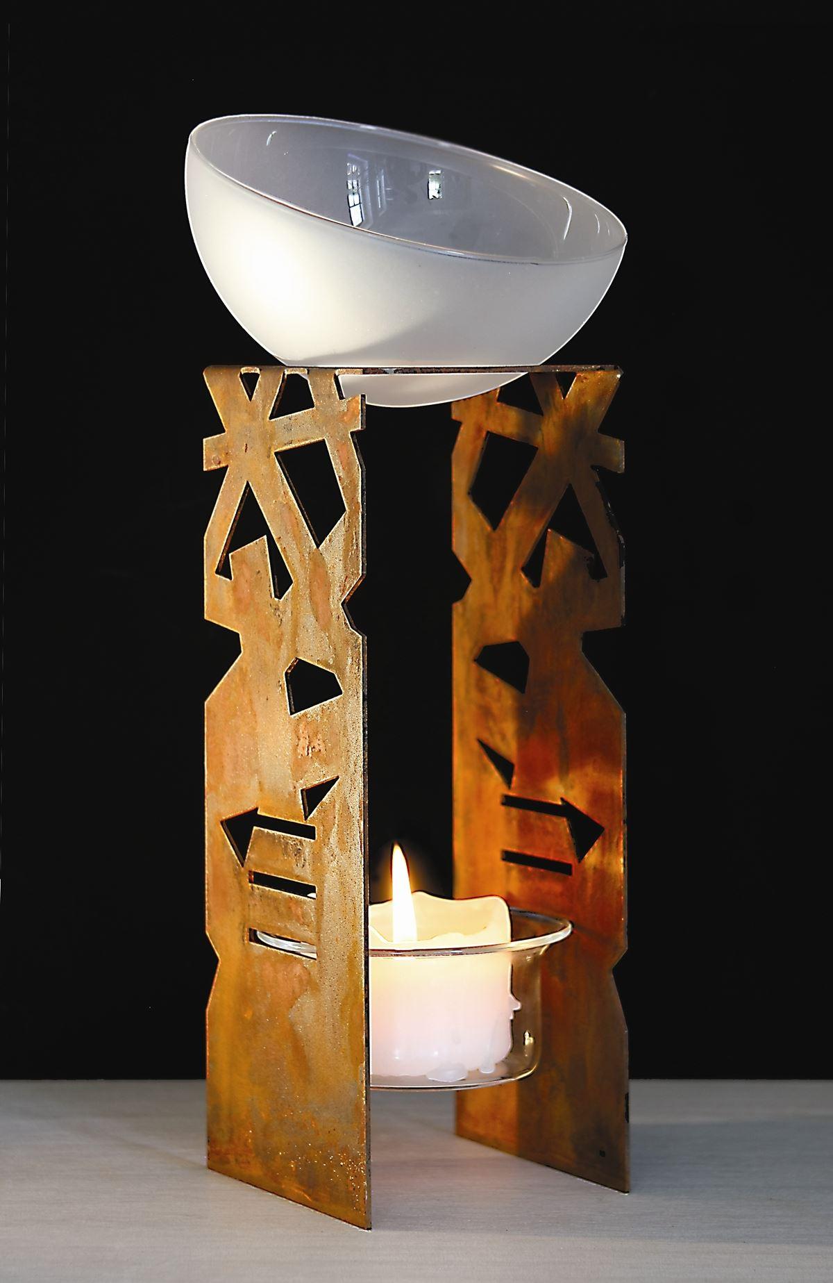Eine Duftleuchte für Teelichter und Aromaöle/-Essenzen aus unserer Serie mit angerostetem Stahl.