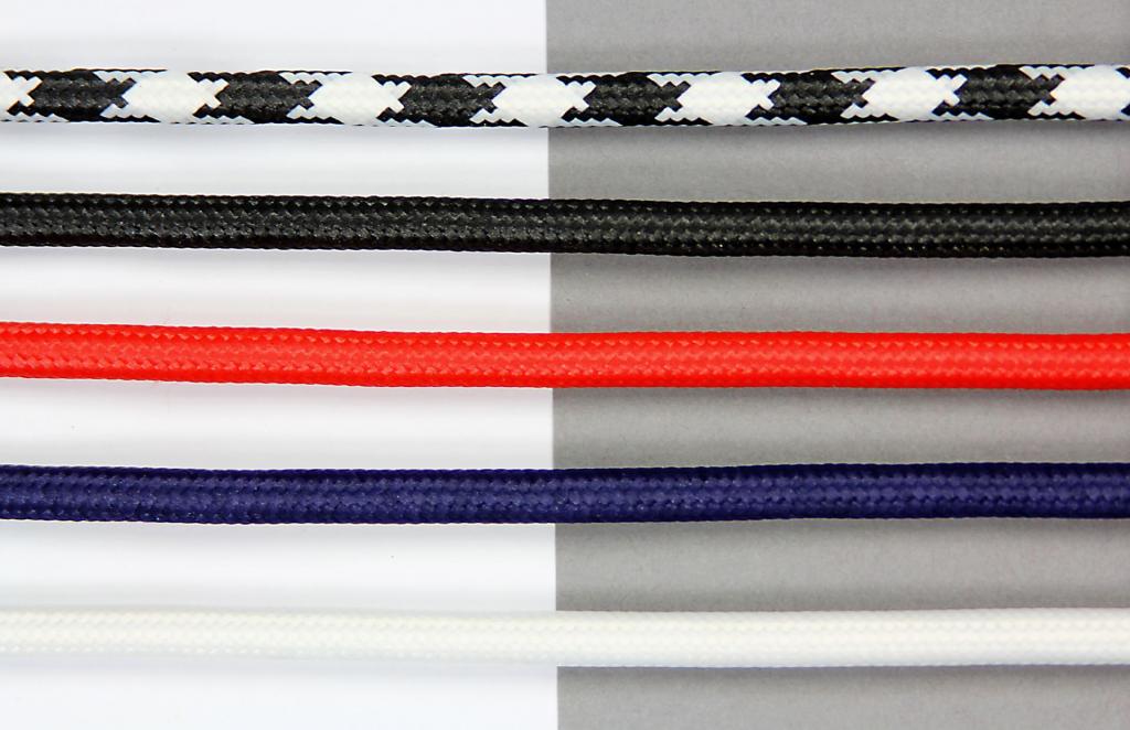 mit farbigem Textilkabel in rot, weiß, schwarz-weiß, schwarz oder blau