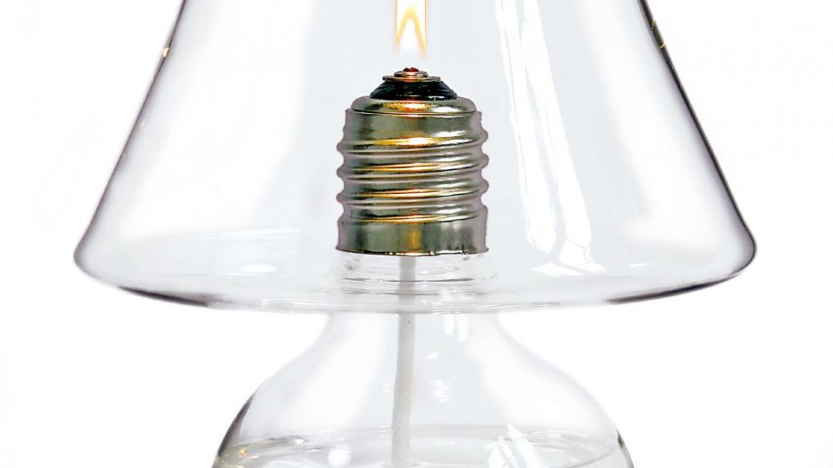 Die LUXlight ist die natürlichste und zugleich schnippischste Antwort auf den Abgesang des Edisonschen Leuchtkörpers: Der Glaskörper wird zum Öltank, die Fassung zum Docht verkehrte Welt, die das Herz erfreut! Der nach unten geschlossene Glasschirm macht die LUXlight zum einen resistent gegen Windzug und lässt sich - falls man dies möchte -zum anderen mit individuellem Beiwerk dekorieren.