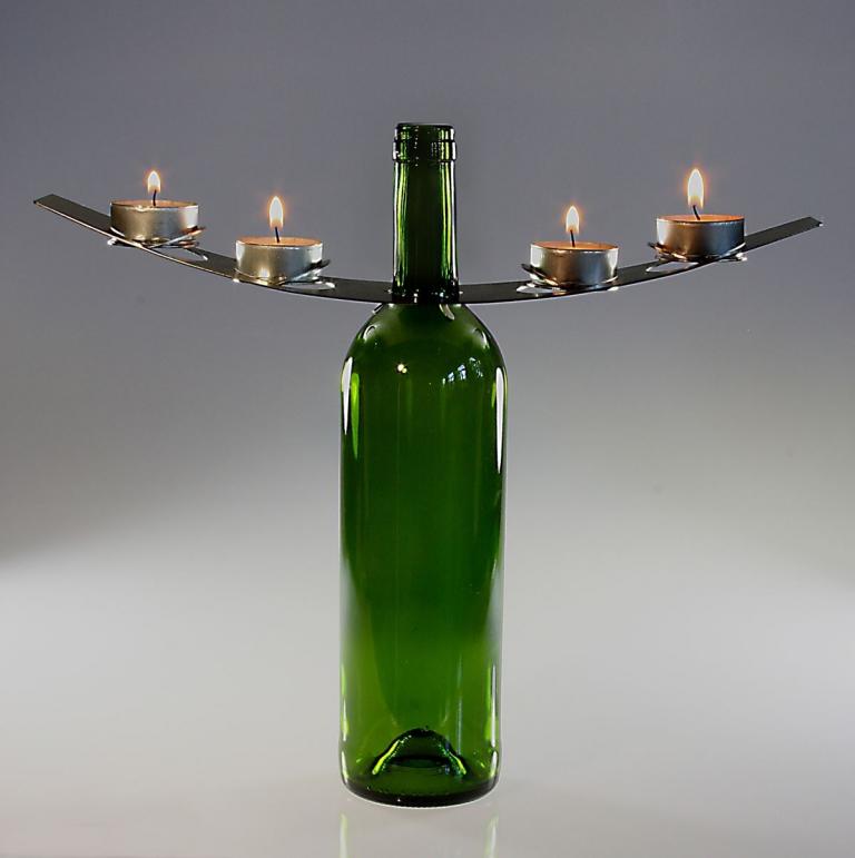 ..ob noch ungeöffnet oder schon geleert: Wein-, Sekt- oder Champagnerflaschen werden zum Lichtobjekt, ohne Strom, dafür romantisch mit Teelichtern.