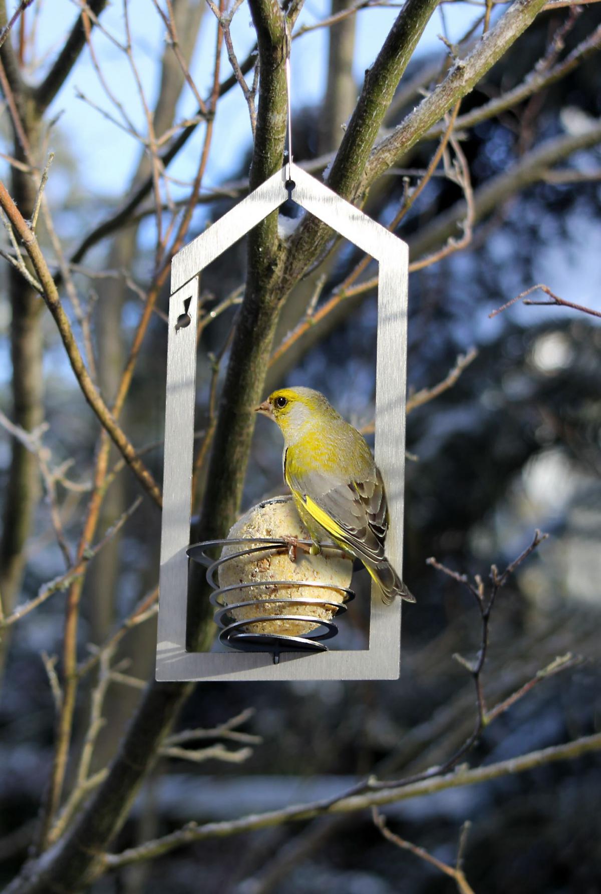 Wir bieten Ihnen hier unsere etwas anderen Meisenknödelhalter an. Klar im Design, unverwüstlich in Edelstahl, für Meisenknödel ohne Kunststoffnetz.