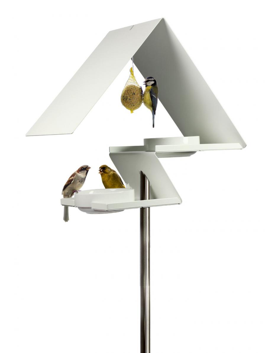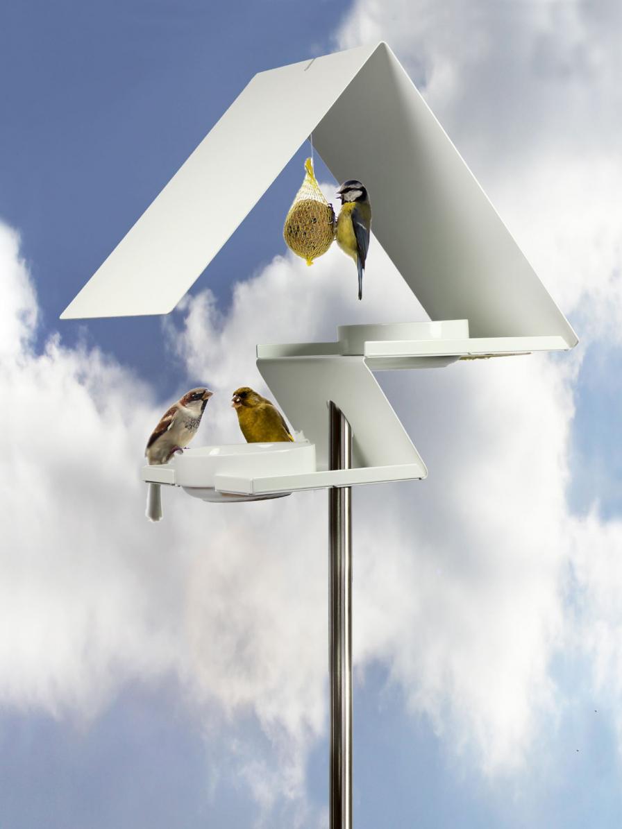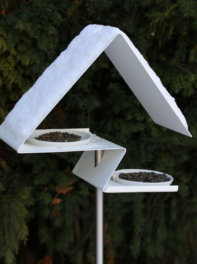 Passend zu unseren weißen Vogelhäusern gibt es nun auch unser in Edelstahl gefertigtes Vogelfutterhaus mit einer weißen Pulverbeschichtung.