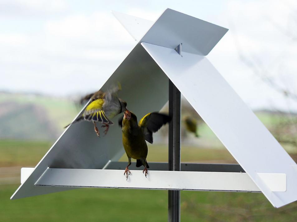 In ihrer schlichten Geradlinigkeit fügt sich diese Futterstelle in jedes moderne Gartenambiente ein.