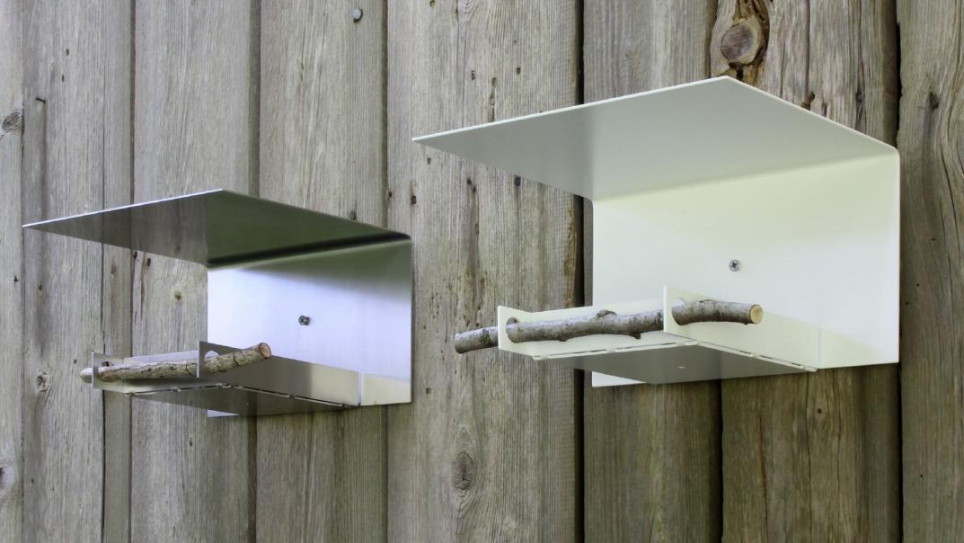 Gefertigt wird das Vogelhaus aus 1,5 mm starkem, gebürstetem Edelstahl. Als Variante, passend zu unseren anderen Futterstellen, ist es auch in einer weißen Pulverbeschichtung erhältlich.