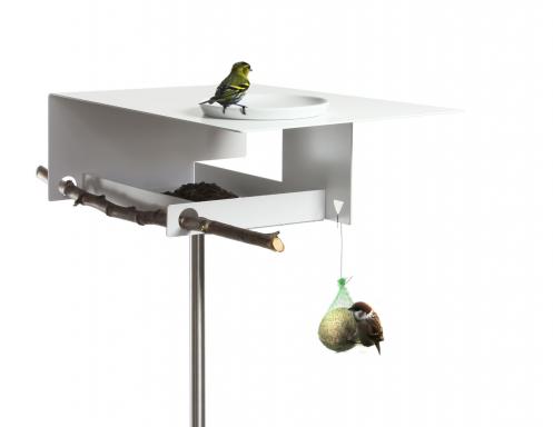 Der Begriff Vogelimbiss ist deshalb zutreffend, da es in seiner Kombination als Futterstelle und Vogeltränke auch Wasser für die Vögel in den trockeneren Jahreszeiten bereithält.