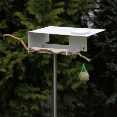 Vogelhaus aus Aluminium mit einer weißen Pulverbeschichtung