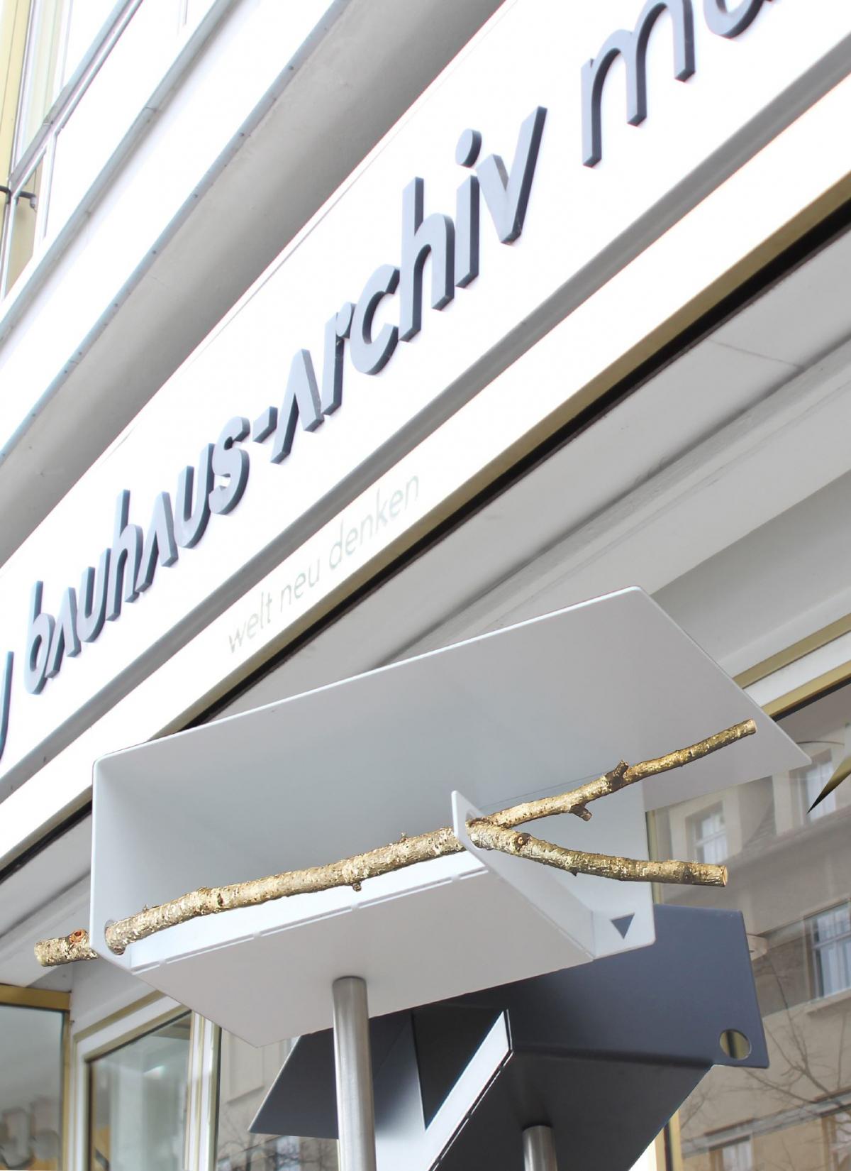 Unser Vogelhaus im Bauhausstil wird ohne Ast und Futtermittel ausgeliefert. Sie können aber zusätzlich unser „Starterset“ mit Ast und Futtermittel bestellen.